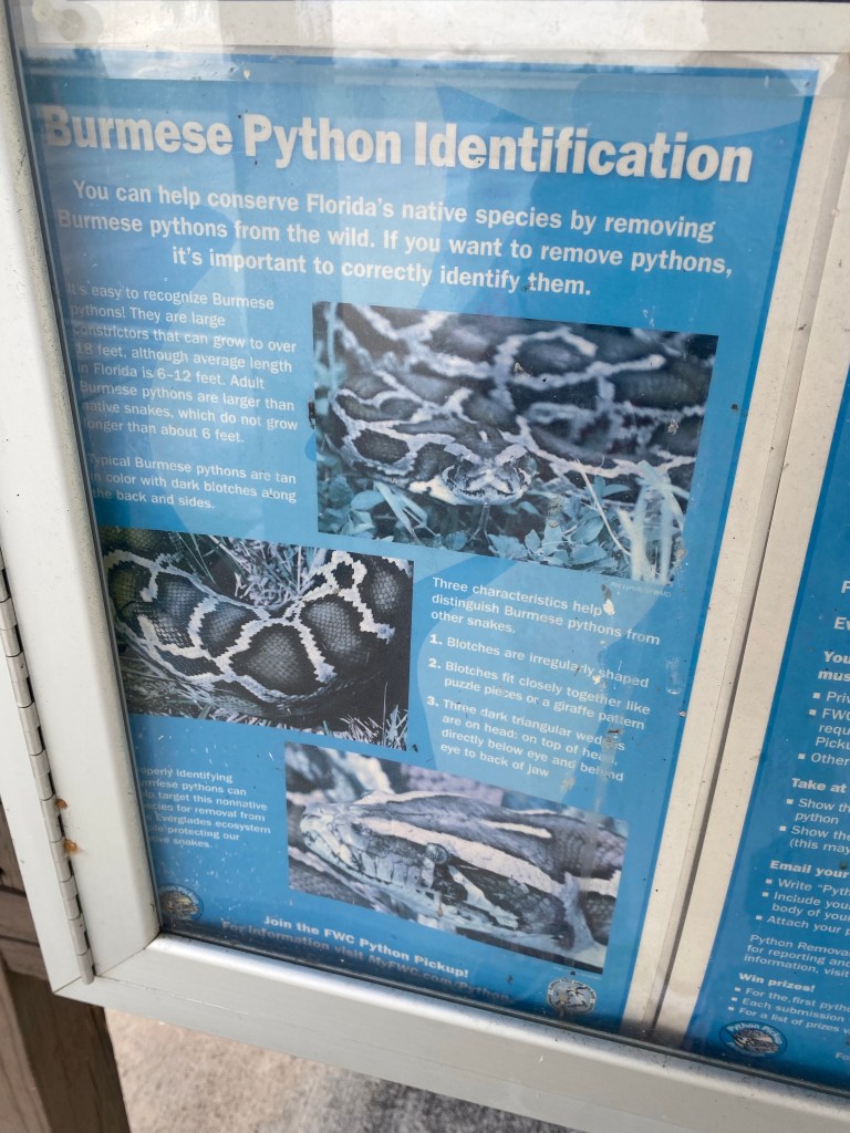We were in Florida last weekend. We did not go to Orlando but much south down to Miami and Everglades region. Most of you know what they are famous for. The alligators 🐊 are supposed to rule that region. But it seems pythons are now common.