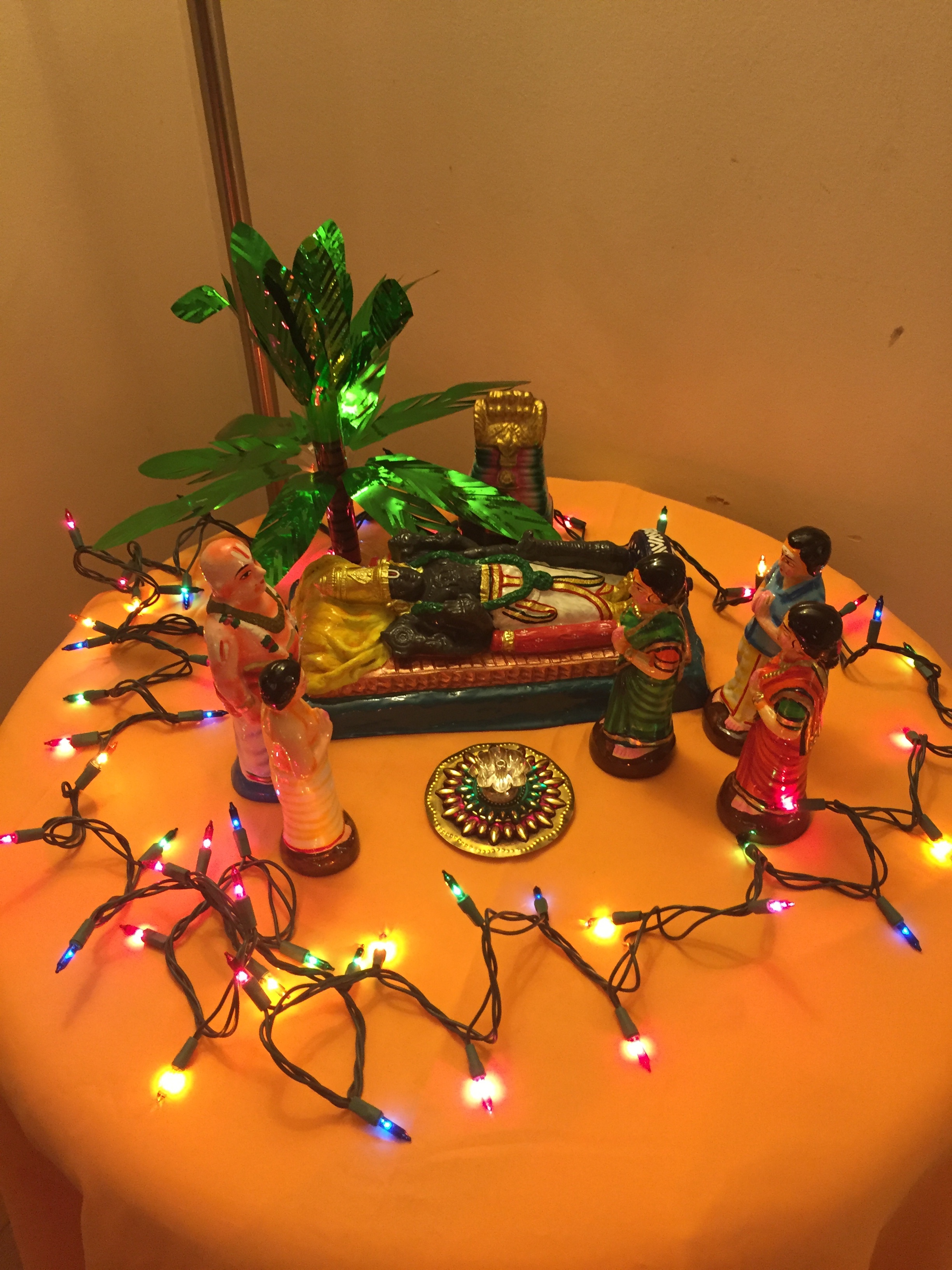 It’s that time of the year. The time I socialize invite people or go to their houses. Twenty two years back I started this tradition with some toys. It was just after my son’s first birthday and I was too excited. Couple of cardboard boxes and stuffed animals and a picture of Saraswathi and Murugan adorned my golu. By the end of following year my son was diagnosed with autism and his terrible twos were terrrrrible. But by his fourth birthday I think my mojo was back and I started collecting dolls . Lakshmi and Krishna were purchased at a local Indian grocery store and the rest at dollar shops. Christmas and Halloween season I used to roam around walmart looking for cheap deals. These dolls make good park dolls. My 2003 trip to India marked my first purchase of golu dolls. My Dad took me to Khadi kraft and I purchased a good set of dasavatharam , chettiar and even a marriage set. I got everything the smallest available in the shop. It was packed good and 2003 Navarathri in my small apartment in Boston was one of the best I had. Living in apartments the best thing was you had so many friends in the same place not much to travel. People flocked my golu. My younger one was born the next year and the next couple of years my navarathri took a back seat. But let me tell it was just a scaled down version near pooja room or on top of a shelf but never did I miss one by not taking my dolls out. Then by 2007 online orders came into being. We had moved out of our apartment to our own townhouse with not many Indians. But I continued to shop for dolls online as well as in store. I didn’t have many guests but my golu became bigger and bigger each year. Autism is a big part of me. My son can throw huge tantrums and my entire house can shake, so imagine the nervousness I used to have while he moved around my golu. We moved to Pittsburgh in 2011 June and my father in law passed the same year. My son turned 13 and his behaviors took a nose dive. That was the year we didn’t have any golu in our house. It was definitely depressing. But I should say online ordering saved me. I buy dolls before and after the navarathri season. That year too I ordered online. I found out this was my biggest stress reliever. A passion I had developed over the years. 2012 I set up a decent size golu. My formal living room brightened up with lights. An independent home I got with a big living room so I can specifically allot for golu. It was definitely a dream come true for me. My younger son and myself joined shloka classes at the temple. With apprehension I handed everyone navarathri invitations there. To my surprise almost everyone dropped by. They admired my dolls and the uriyadi Krishnan I got that year was a hit. My parents were there that year and that was the first Navarathri I think my Dad saw me in work.