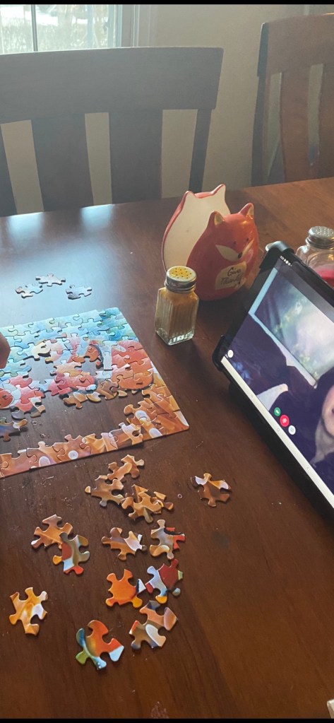 Online classes are not easy. I have been asked how we do it. I am really proud that he sat patiently waiting for his turn doing a 100 piece puzzle (which he finished) and took his turn to exhibit his talent listening to his friends rap, sing, dance, play a guitar and read a joke😀.