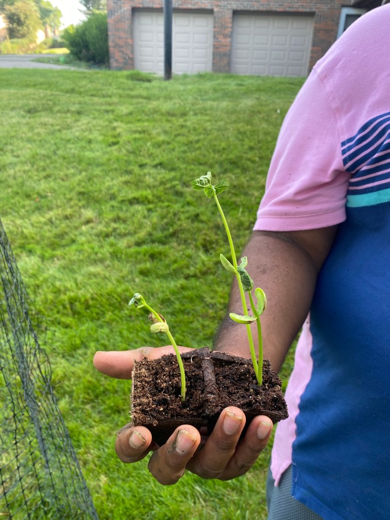 Just an update on the nursery my son started with my Mom , the seeds are now little seedlings and since we have a heat wave going on, we decided to plant it. So he dumped soil onto the ground and planted his bean seedlings today.