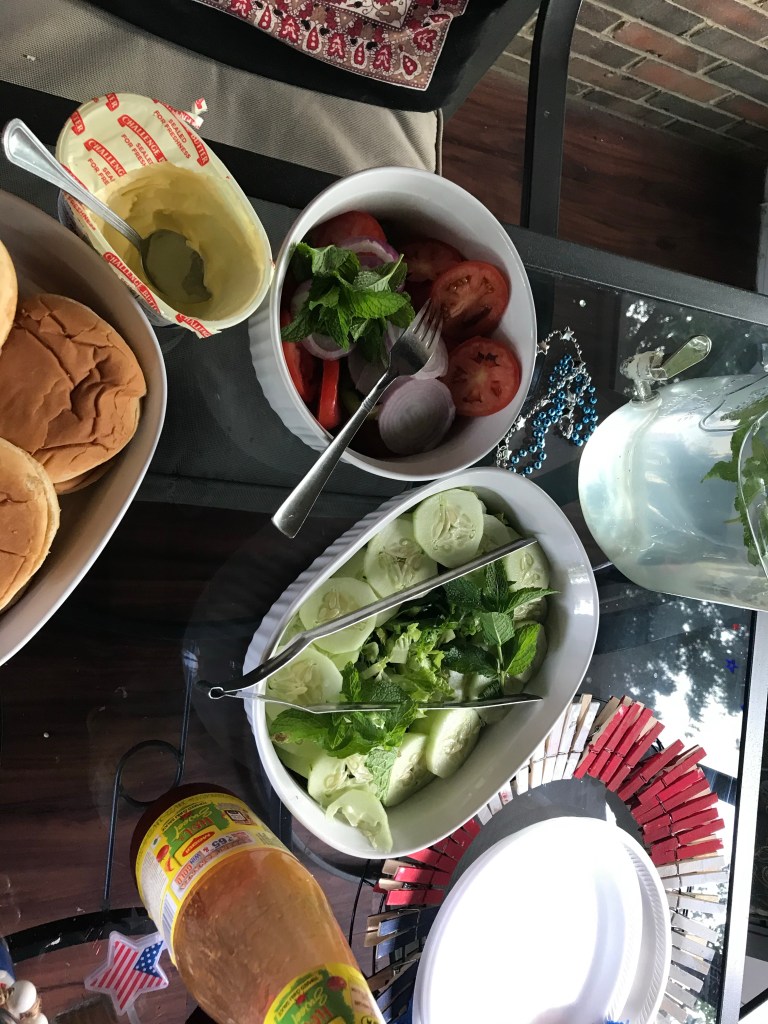 With so many red white and blue projects with my boy in the past six weeks forced me make some American food for my parents. A 4th of July party setting with zero planning. Being vegetarians my younger one shopped for his grandparents so that they can eat at peace without questioning about the ingredients.