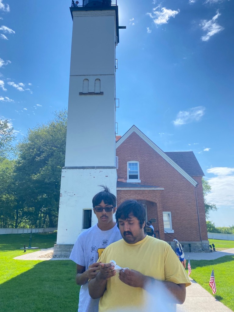 From their we drove to Presque Island to visit the light house. Pictures were taken and we checked in there. My younger one wanted to climb up the light house and we were the last ones to make the trip up. I am so nervous about heights and climbing down is harder. But the 79 steps up and down was really an adventure I was thrilled that I completed the task. (I could have just stayed down with my parents, but I did take the risk of climbing up. No pictures on the way up or down. I was not so sure of those spiral stairs).