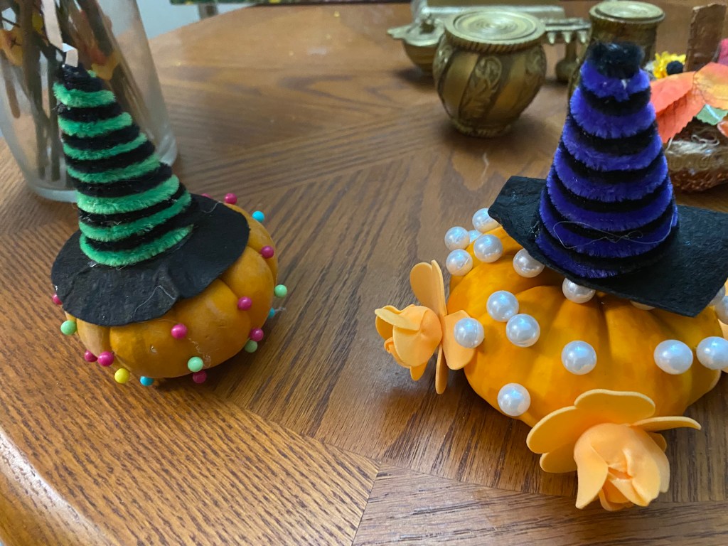 We did these cute little witches yesterday. We used some pins to push into these tiny pumpkins. They came out really good. I also have a big pumpkin that my boy picked up from a patch which we are going to paint.