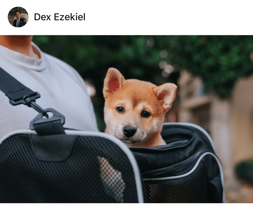 Little Jimmy loved his new home. He loved his new family. He was being called foxy since he looked like one by the children in his household. What he didn’t like was being carried around in that bag like a baby. But he loved his family so much he didn’t want to jump out and cause a scene. He was going to act as if he loved being carried around until they let him walk on his own. He was going to be a good boy 🙂.