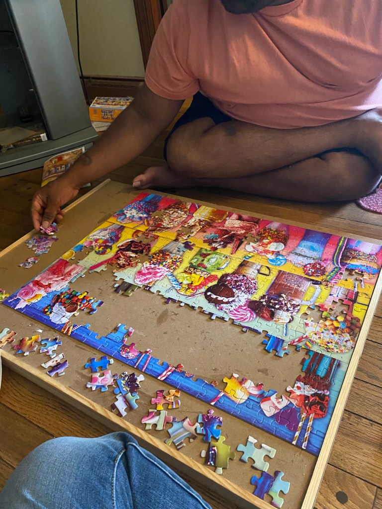 A few weeks back I wrote a post saying my son finished one of his 300 piece puzzle. The same time, I had the opportunity to drop his work at his program’s Connecting Me Home to be exhibited for their art and garden show.