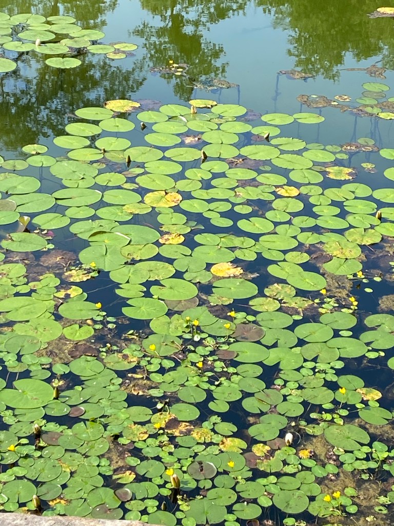 We went to Pittsburgh Botanic Garden last week. We walked nearly 2.5 miles on a trail, when I saw a sign that said Lotus pond. I was too curious since I have not seen Lotuses in this part of the world. I did see lot of tiny yellow flowers and huge leaves, similar to lotus leaves which I have seen in India. So I used my plant identification app and found some to be lotus and some to be lilies. I think the app used the leaves to identify the plants but I do not know what the yellow flowers are!!