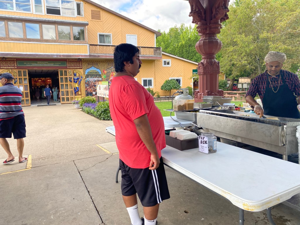 We then came outside and saw a live dosa (rice pancakes) counter outside. Okay, seeing this even my husband a very picky eater got excited. I started observing the counter and saw a continuous stream of orders being placed and a variety of it being offered. It costed anywhere between 11 and 15 dollars per dosa. A bit more expensive than restaurants but people were willing to pay since it was a fund raiser for the temple.