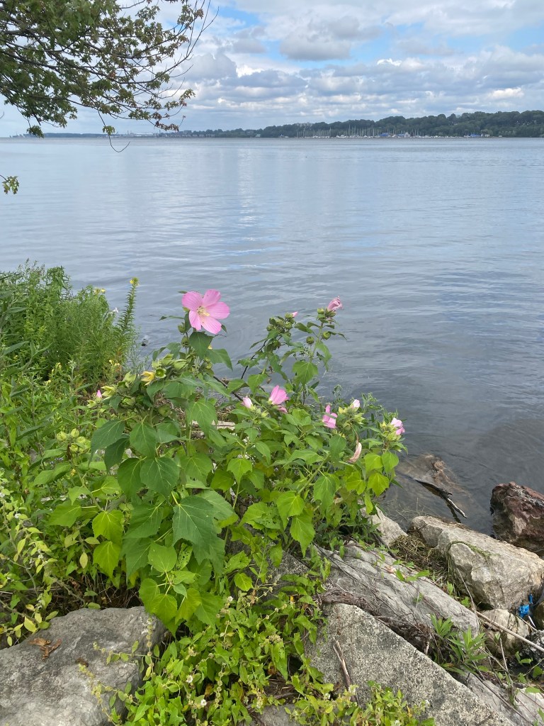 Summer memories from the shores of Lake Erie! A swamp rose mallow growing on it’s own! No need for a gardener or a human to take care of it. Just leave them alone and they do their duty! The tiny bugs inside seem to enjoy the nectar!