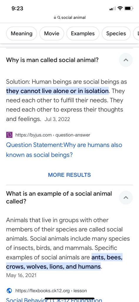 So I am a social animal 😄, so I can be a ant, bee, lion or a wolf 😊!