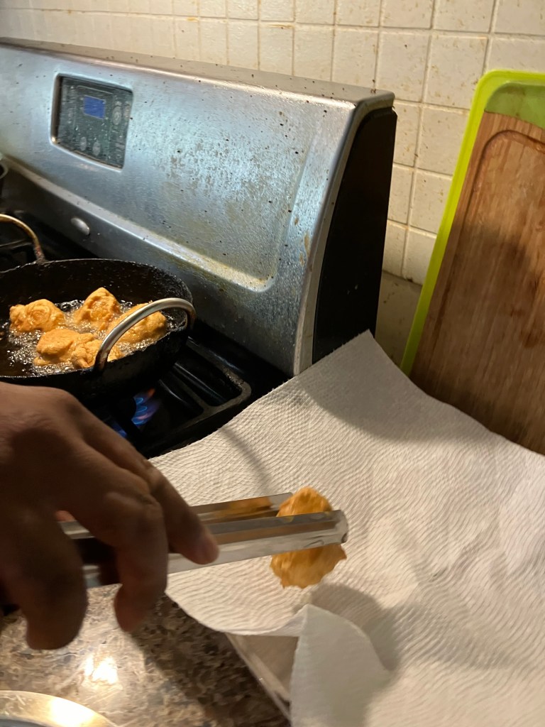 Yet, a minor battle victory. We got some beans and potatoes. The potatoes became dumplings and were deep fried and they tasted yummy 😋!