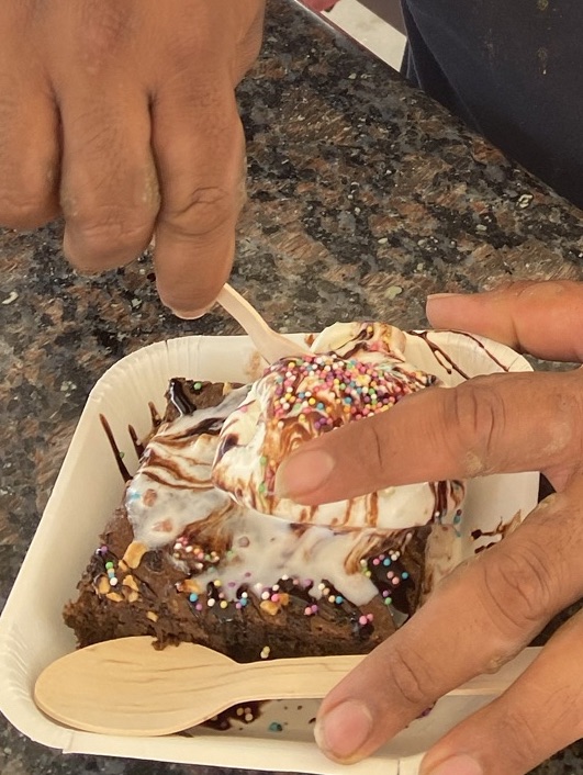 Brownie ice cream at 2 pm. The ice cream passed but the brownie failed. My son didn’t like it.