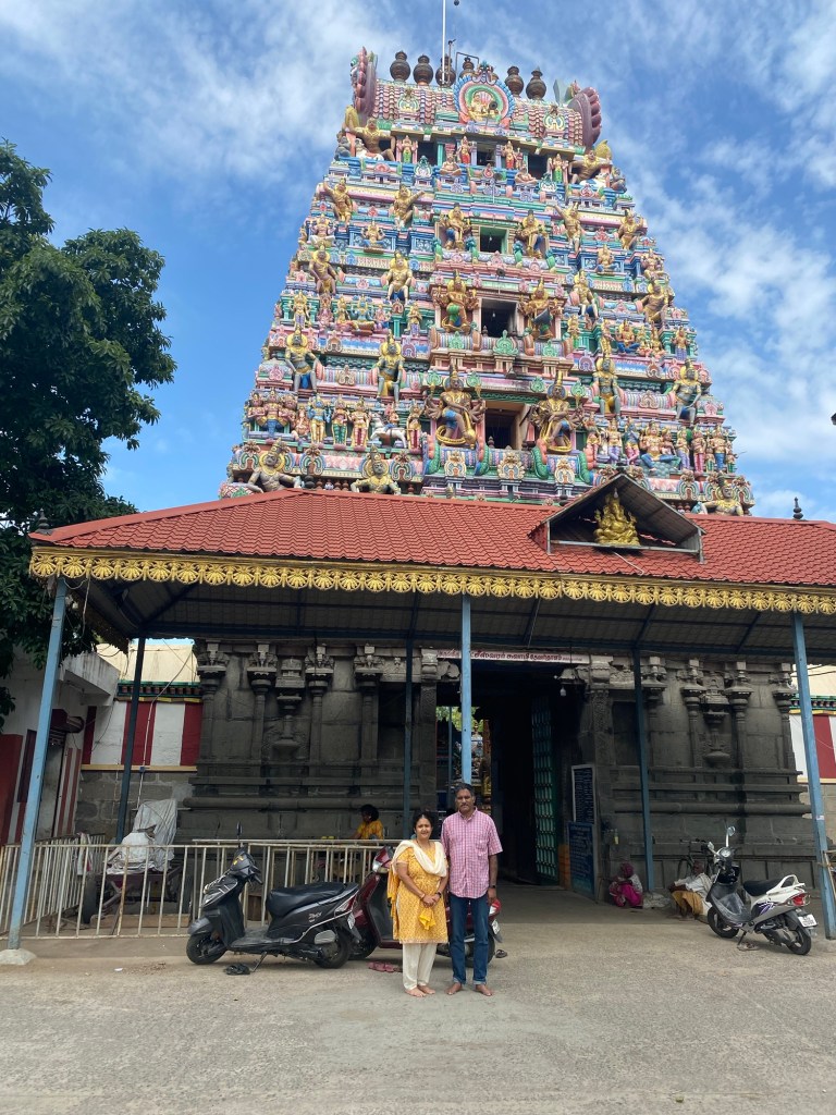 It was almost lunch time, we thought we would miss Mayilam Murugan Temple. My boy had spent a lot of time at a rest area. Eating fresh Indian snacks and coffee is a luxury 😃. But we were on time. My boy slept in the car as the driver watched him and the rest of the family made a quick visit. By the way, having a driver a luxury that we cannot afford in the United States.