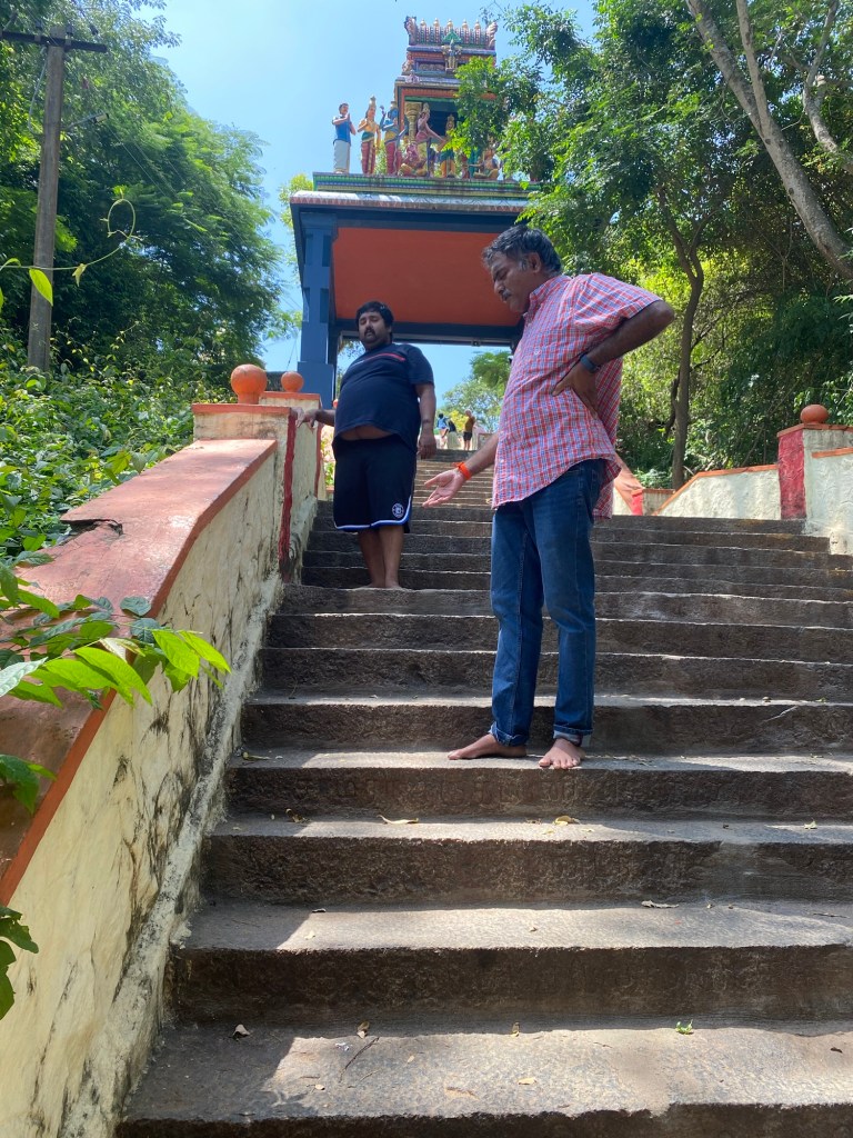 The next temple stop was Nadupalani. This is being managed by my Guru. I had seen pictures and was eager to see the big Murugar statue , something similar to the one in Batu caves, Malaysia. It was just 100 steps. My boy climbed casually but coming down he slowed down. 😃