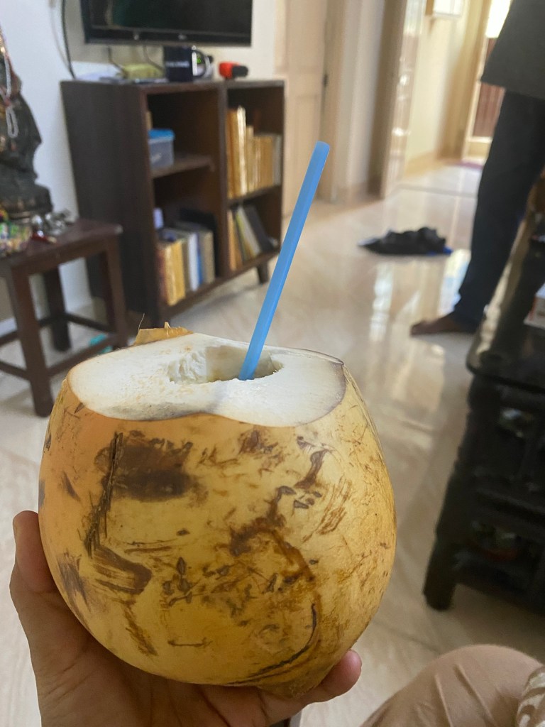 Drinking tender coconut water out of cardboard boxes is good. But right out of the coconut is cool.