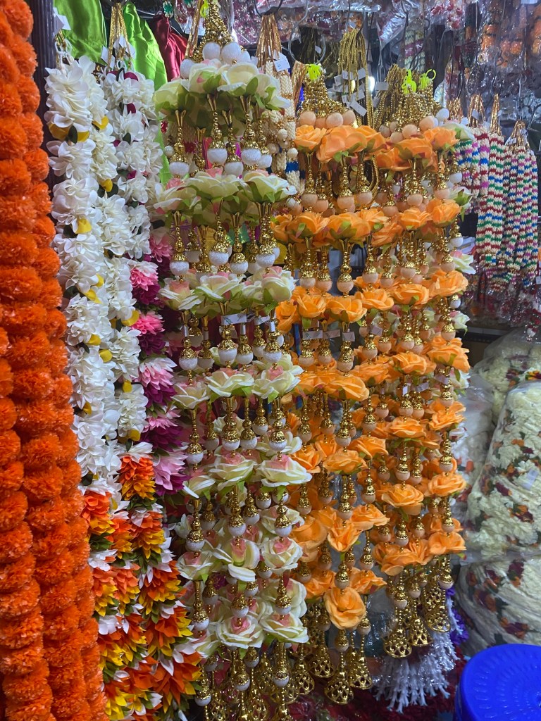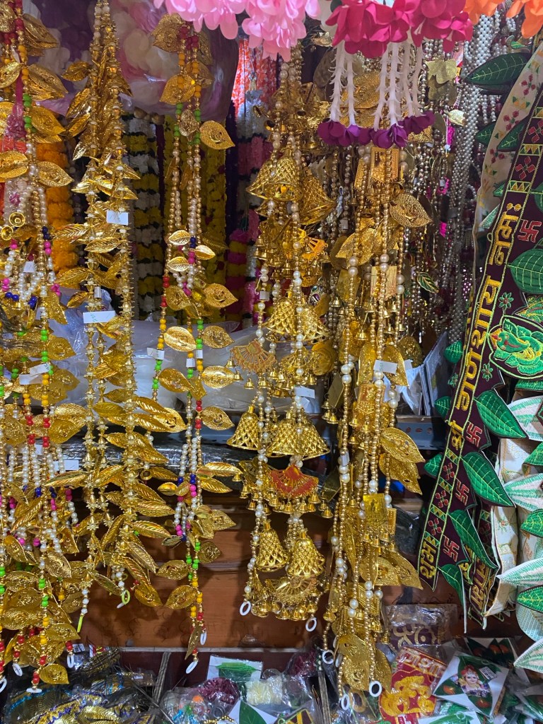 I picked up a few and then took a lot of pictures. I loved these golden bell garlands. But I know for sure, these would not survive international travel. I just need to be satisfied with the pictures.