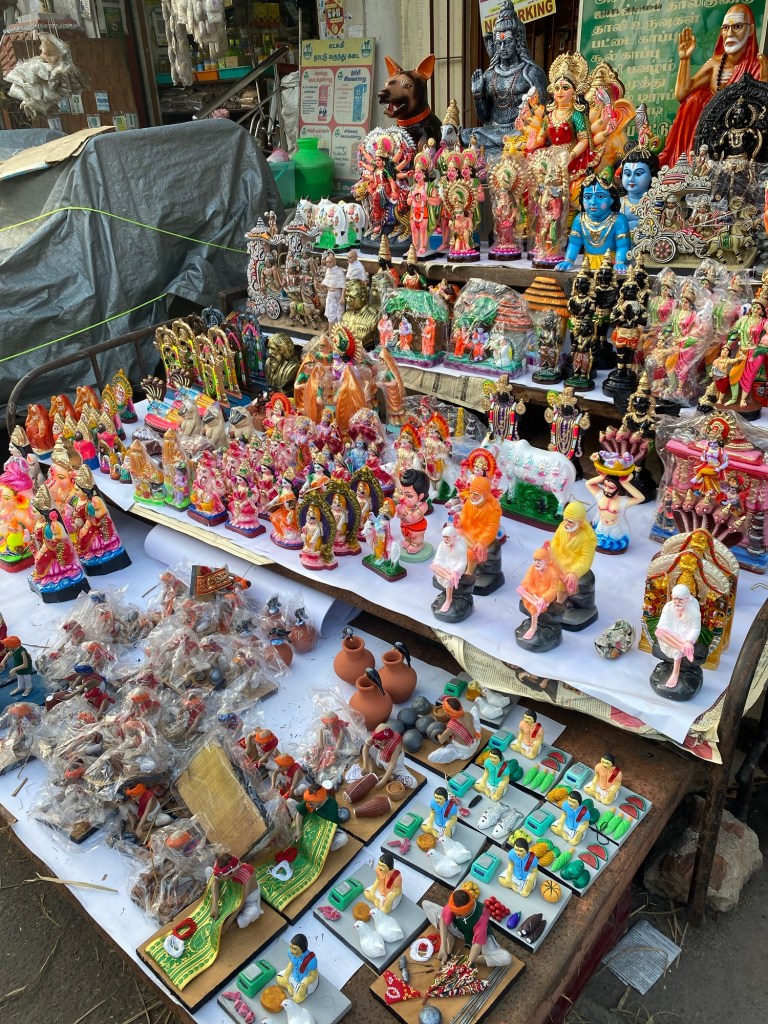 Navaratri begins in fifteen days. The streets of Mylapore have started filling up with Golu dolls! Okay, this is my obsession and let me tell you I didn’t plan on being in Chennai for the pre season time. Oh, I was overwhelmed when I saw these dolls! Anyway, I can’t purchase anything since most of them are made of clay and heavy but I had a wonderful time just window shopping. Okay, I did buy two tiny ones. 😊