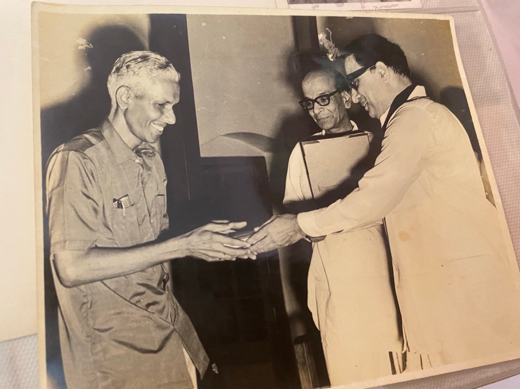 Grandfather getting a reward from M G Ramachandran, Late actor/chief minister of Tamil Nadu.