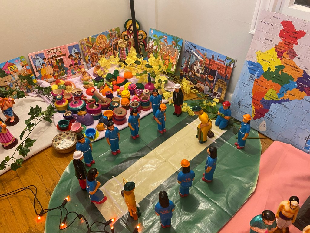 My son received the Indian festivals puzzles and the India puzzle when we went to India as gifts. I received the Mahashtrian doll set. Thanks to my cousins for giving these.