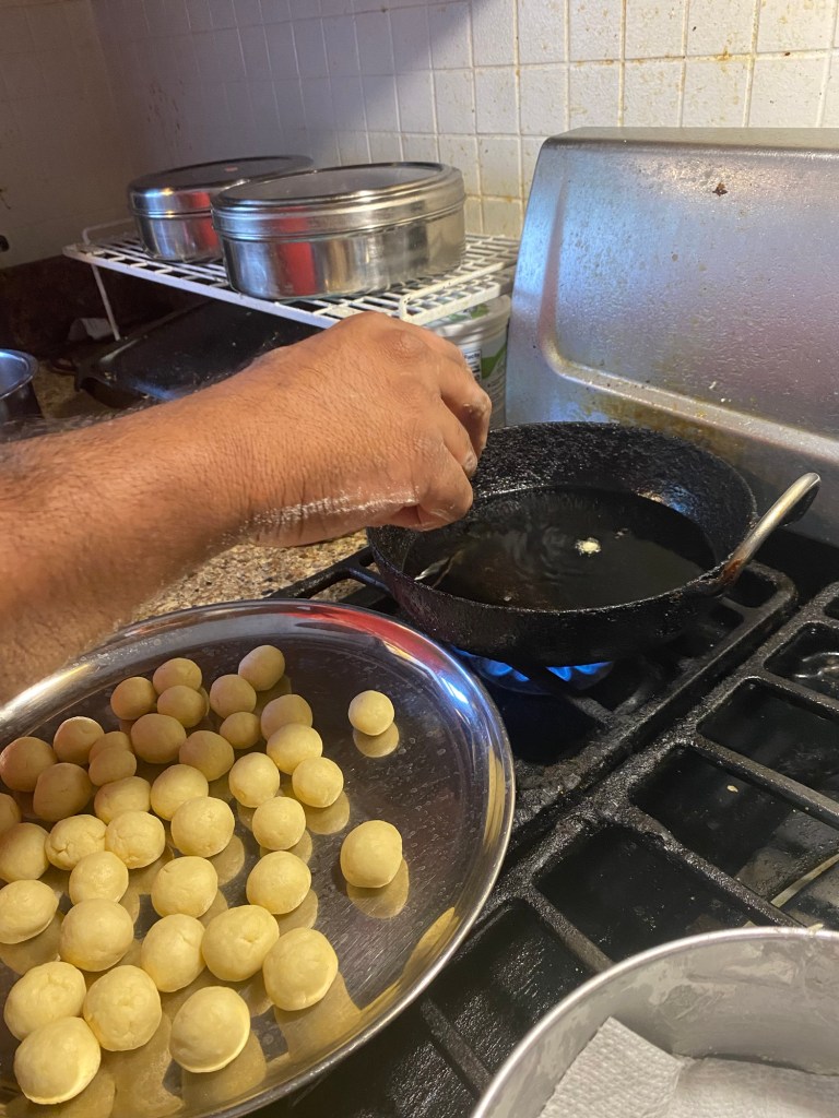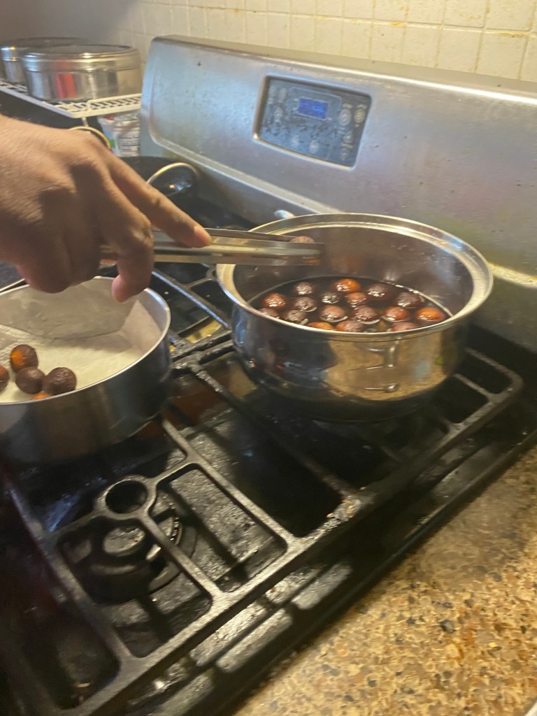So, this sweet in all it’s glory was made by my boy today. Except for kneading the dough, he made everything from start to finish. We made around 40 and time taken was 45 minutes!