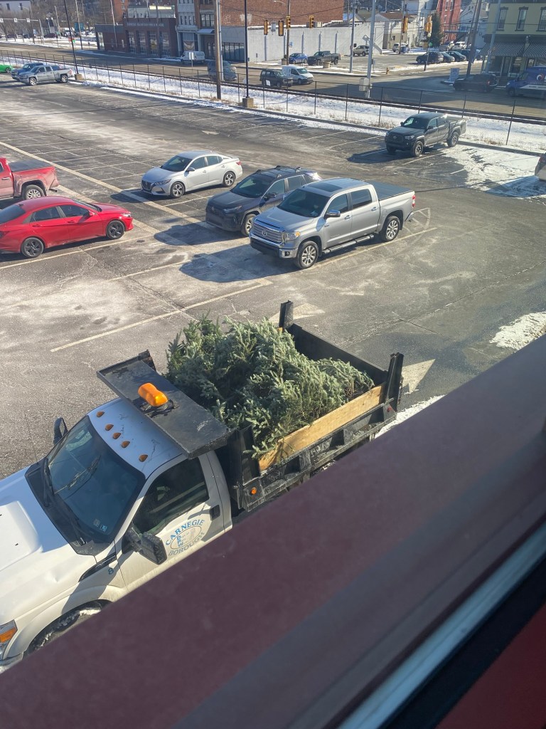 A Christmas tree placed outside a public building was finally removed! I thought it was going to be there forever 😀!