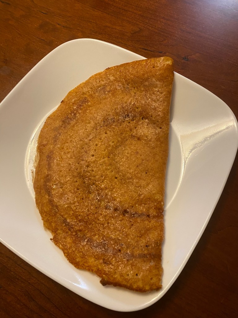 When you are a foodie, you love spicy oily food. Unless that oil is added to the spicy blend, the spices do not give out their flavor. I remember one time when my mom garnished her fried rice, she heated a spoon of ghee (clarified butter) and added the spice mix in it and poured on top of the rice. Yum! The food also needs to cook in oil for sometime for the flavor to be enhanced! Yesterday I prepared a pancake called Adai (filled with different beans) and I took my time to slow cook this one. My hyperactive boy was missing and I had this luxury. The flavor and crispness came perfect. I guarantee restaurants cannot provide the same flavor since they can’t afford to loose time.