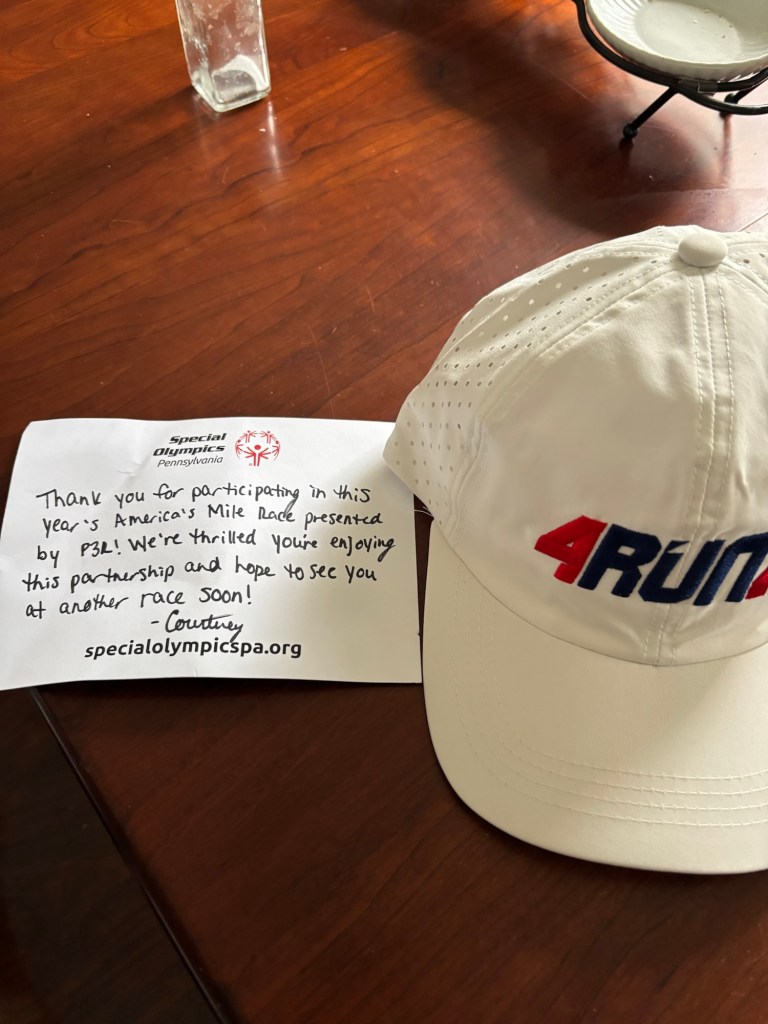 We received our third gift for doing a race with Special Olympics. The fourth race has been cancelled because of some work. The last one is Turkey Trot during Thanksgiving. Ha Ha, November not too far away.