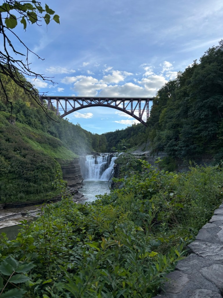 The Upper Falls and the bridge on top of the Genesis river.