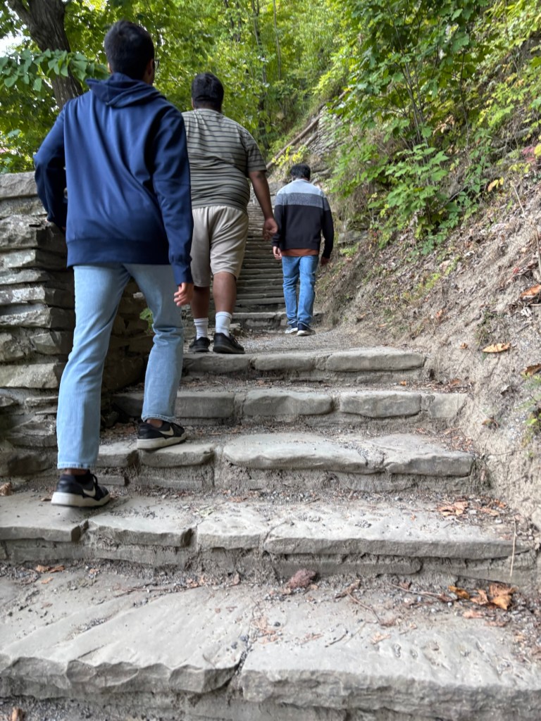 Watching a waterfall was not our goal but to climb up and down this 225 steps to see the bridge up close. This was a task for all of us.