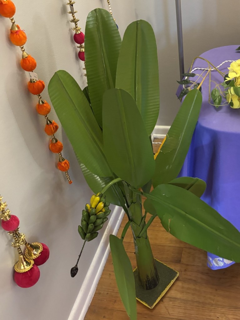 Assembly is not a big deal so my young man started helping me. But I found out one stem was missing. So just one banana plant found itself in my Golu display. Anyhow this is the third house it has moved to along with us from Kerala, India and I pretty much hope the second main stem is somewhere in my basement and garage area.