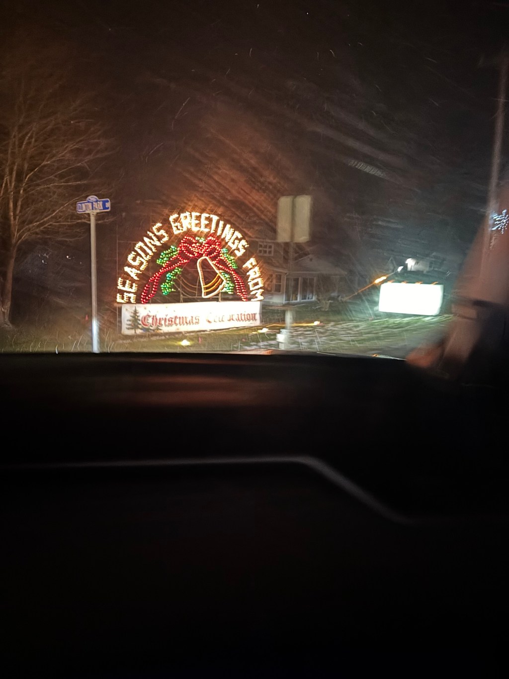 It’s the season. Holiday Light show at Clinton park. A wonderful twenty minute drive as snow flurries hit our windows!