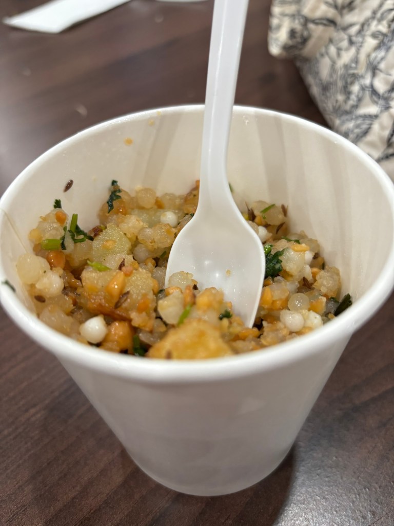 Certain foods are not sold in the restaurants. The fasting food sabudhana kichadi! I rarely make it and the one we purchased at the temple was Yummy! Remember the bobba tea I wrote a while back! Same stuff made spicy.