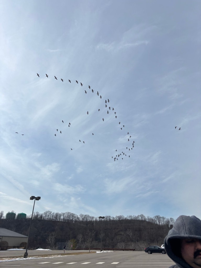 The birds did make an unique sound which even got my young man’s attention. He looked above to see what was happening!