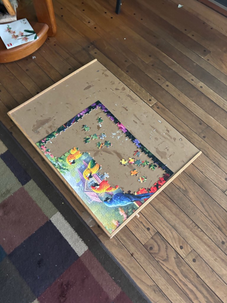 We started our puzzle which usually takes the center stage and background for the main theme. So what is the theme? I have no clue. Once the puzzle is finished will start thinking about it.