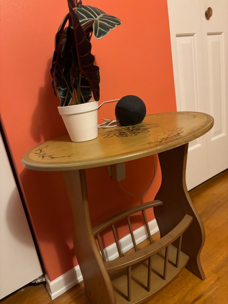 I took the printer out and placed it on a better shelf. Then moved the side table to the middle of the room. My husband screwed it’s leg and we both cleaned the same.