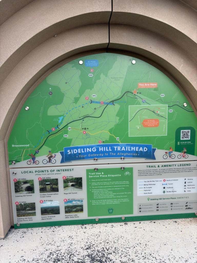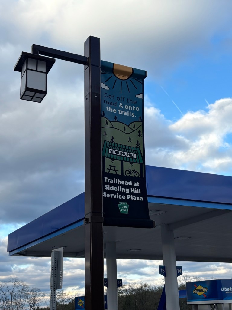 There is a trail, bikers would love it from a service plaza! Yes you can stretch yourself for a mile in midst of a long drive!
