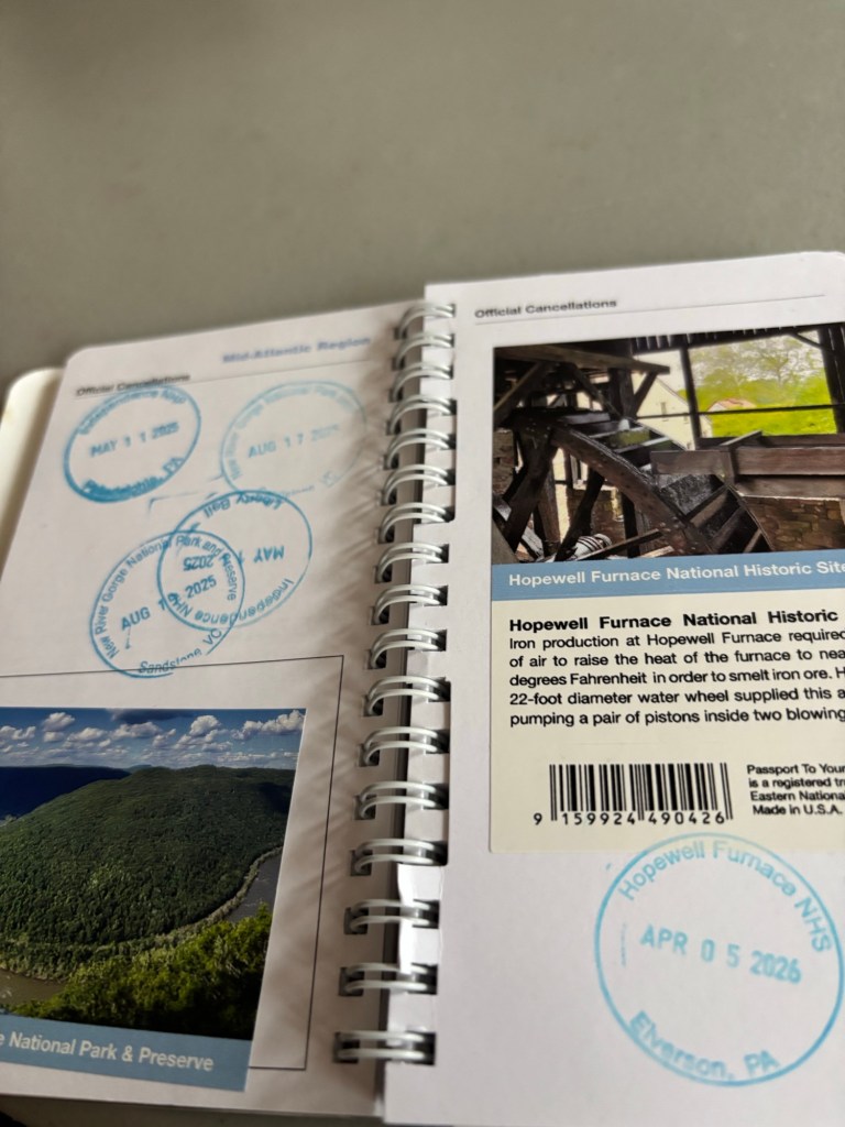 The passport book, a new hobby of ours exactly a year old is getting filled up pretty fast. The Hopewell furnace Historic site was something we saw would have been just missed if not for my NPS app!