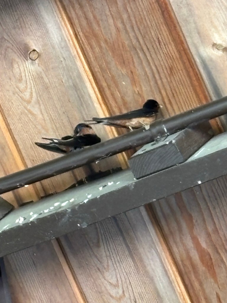 My neighbor told me these are barn swallows. Getting acquainted with them the past few summers 😊!